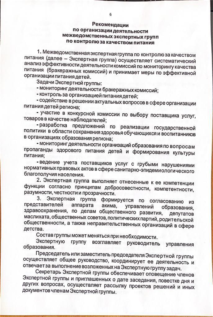 14 ақпан 2022 0 1 2 3 4 5 Тамақтану сапасын бақылау жөніндегі ведомствоаралық сараптамалық топтардың қызметін ұйымдастыру жөніндегі ұсынымдар / Рекомендации по организации деятельности межведомственных экспертных групп по контролю за качеством питания