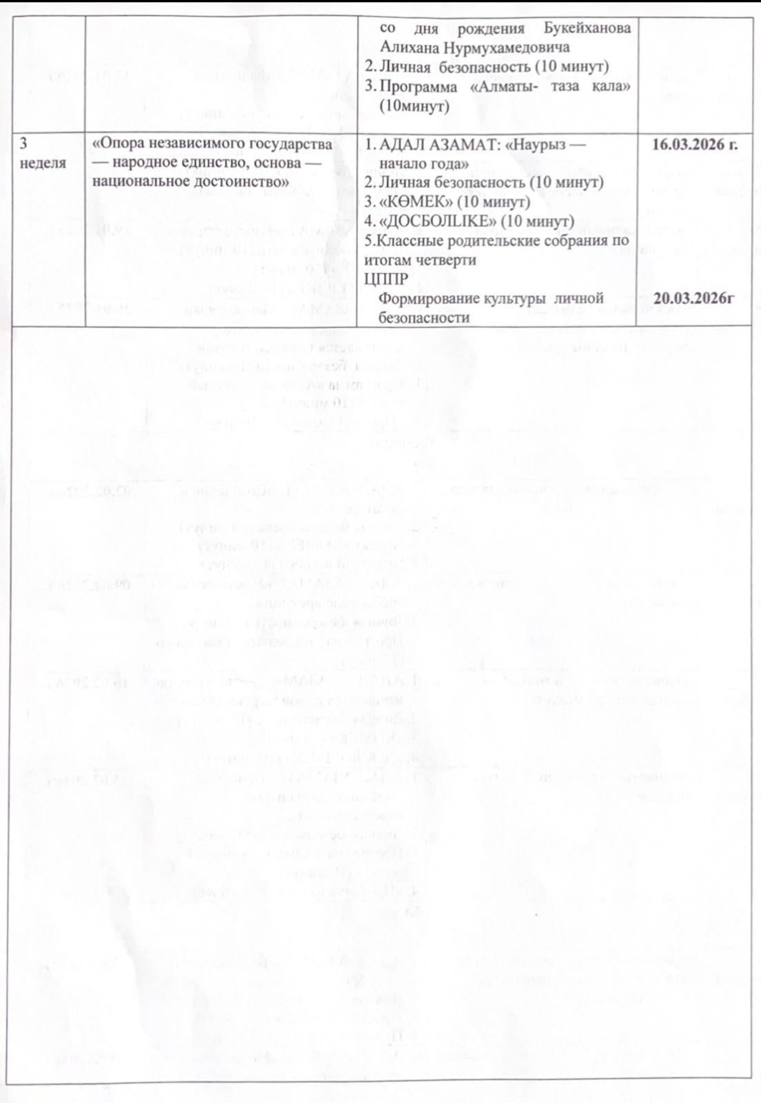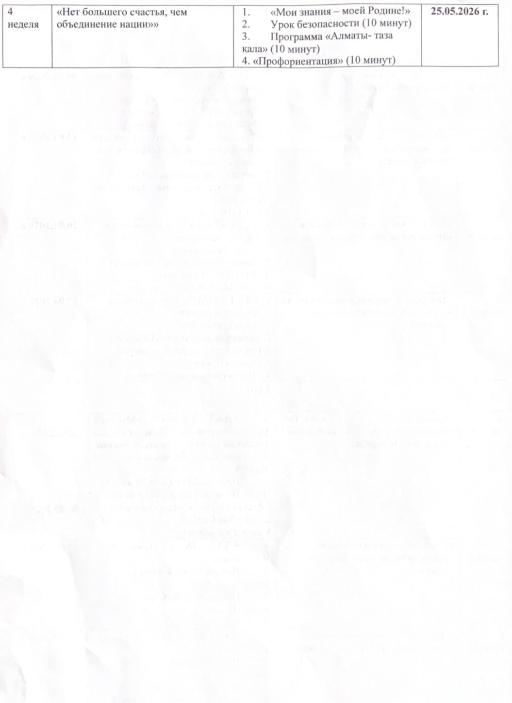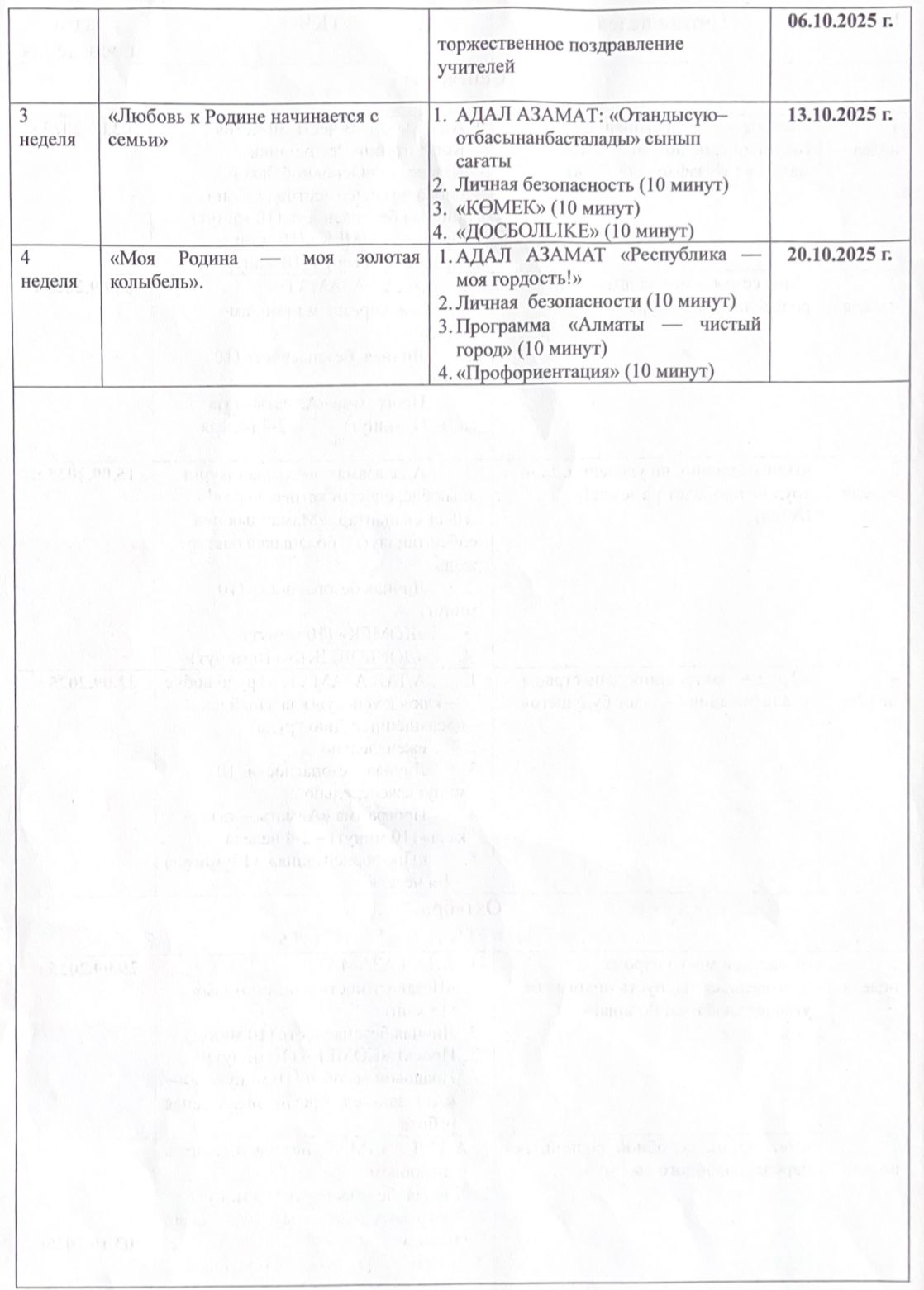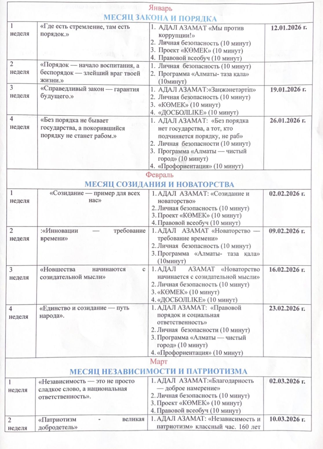 Тәрбие жұмысының циклограммасы 2025-2026 оқу жылы
