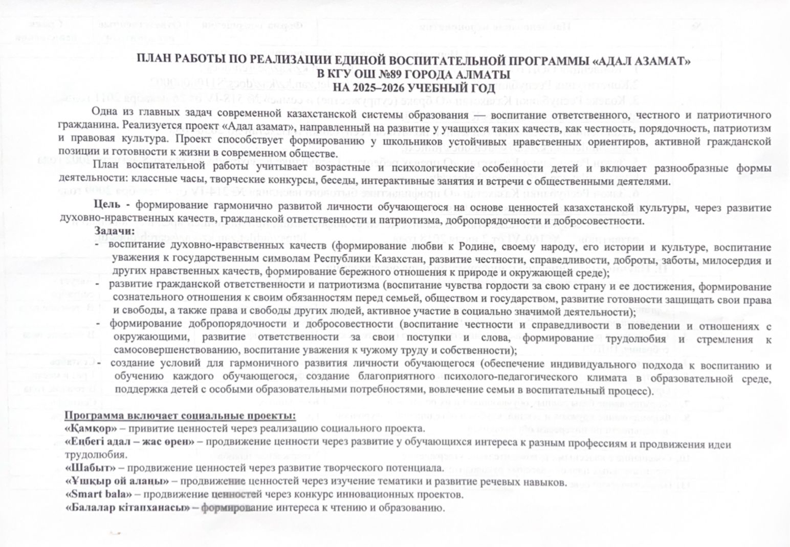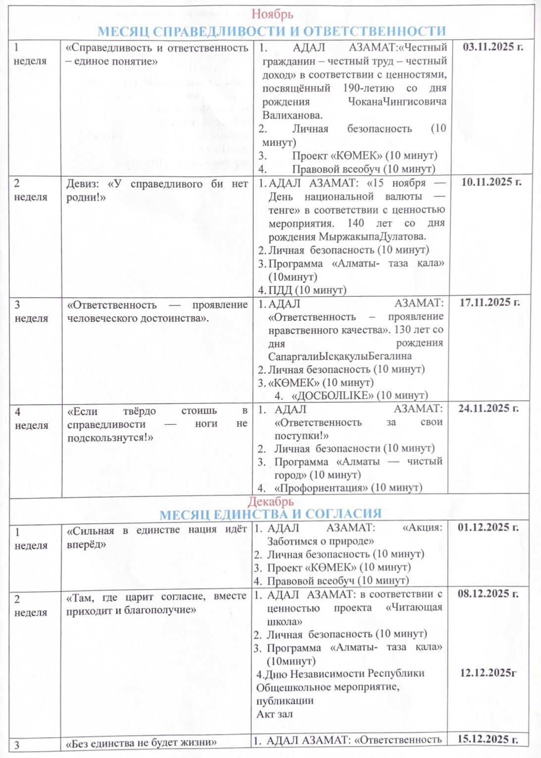 "Адал азамат" Біртұтас тәрбие бағдарламасы