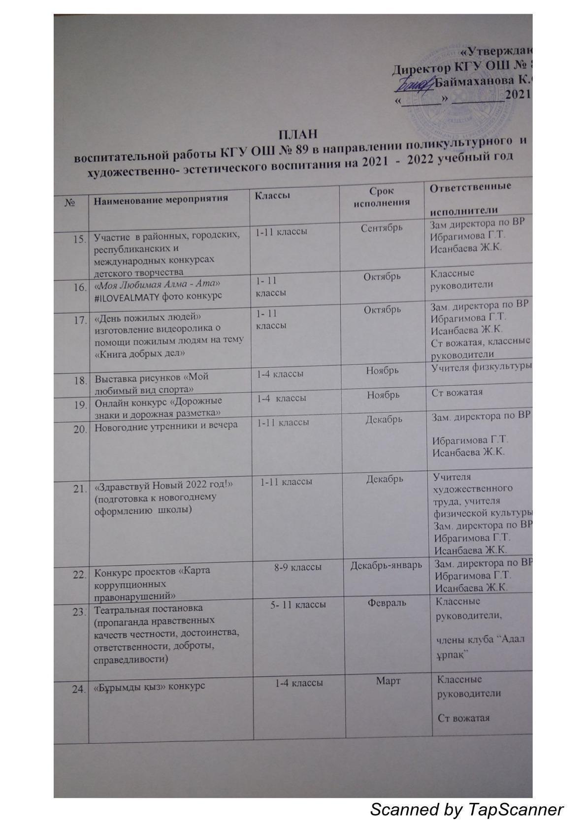 01 қыркүйек 2021 0 1 2 3 4 5 2021-2022 оқу жылына арналған Көпмәдениетті және көркем-эстетикалық тәрбие бағыты бойынша жылдық жоспар