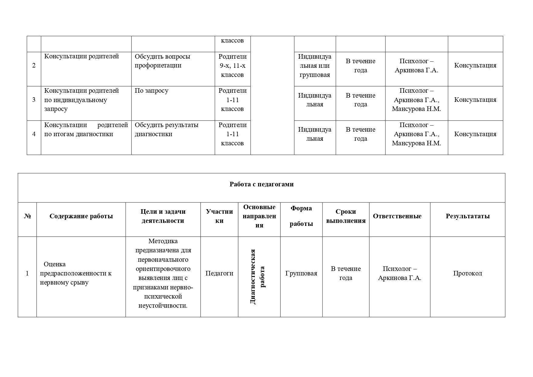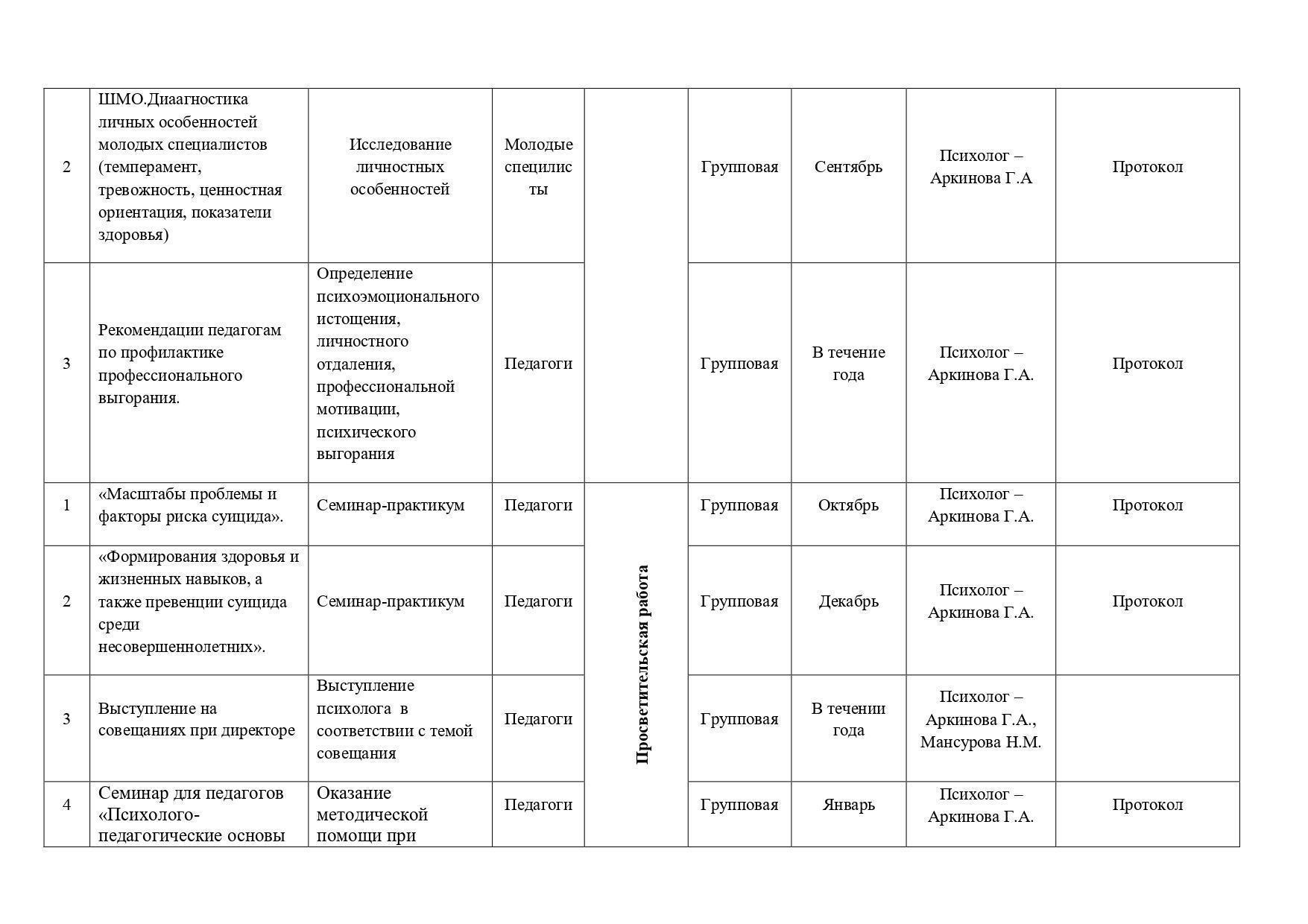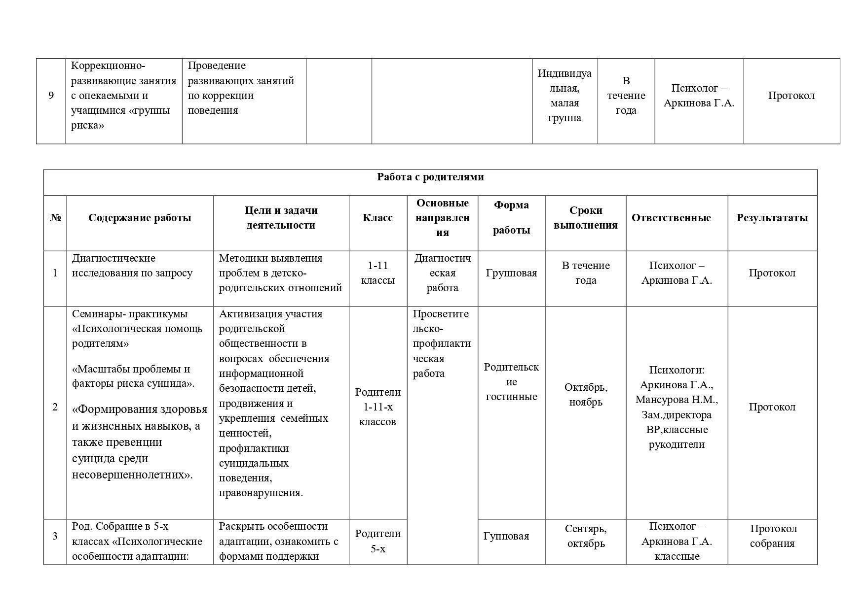 Психологиялық қызметтің 2020-2021 оқу жылына арналған жылдық Жоспары