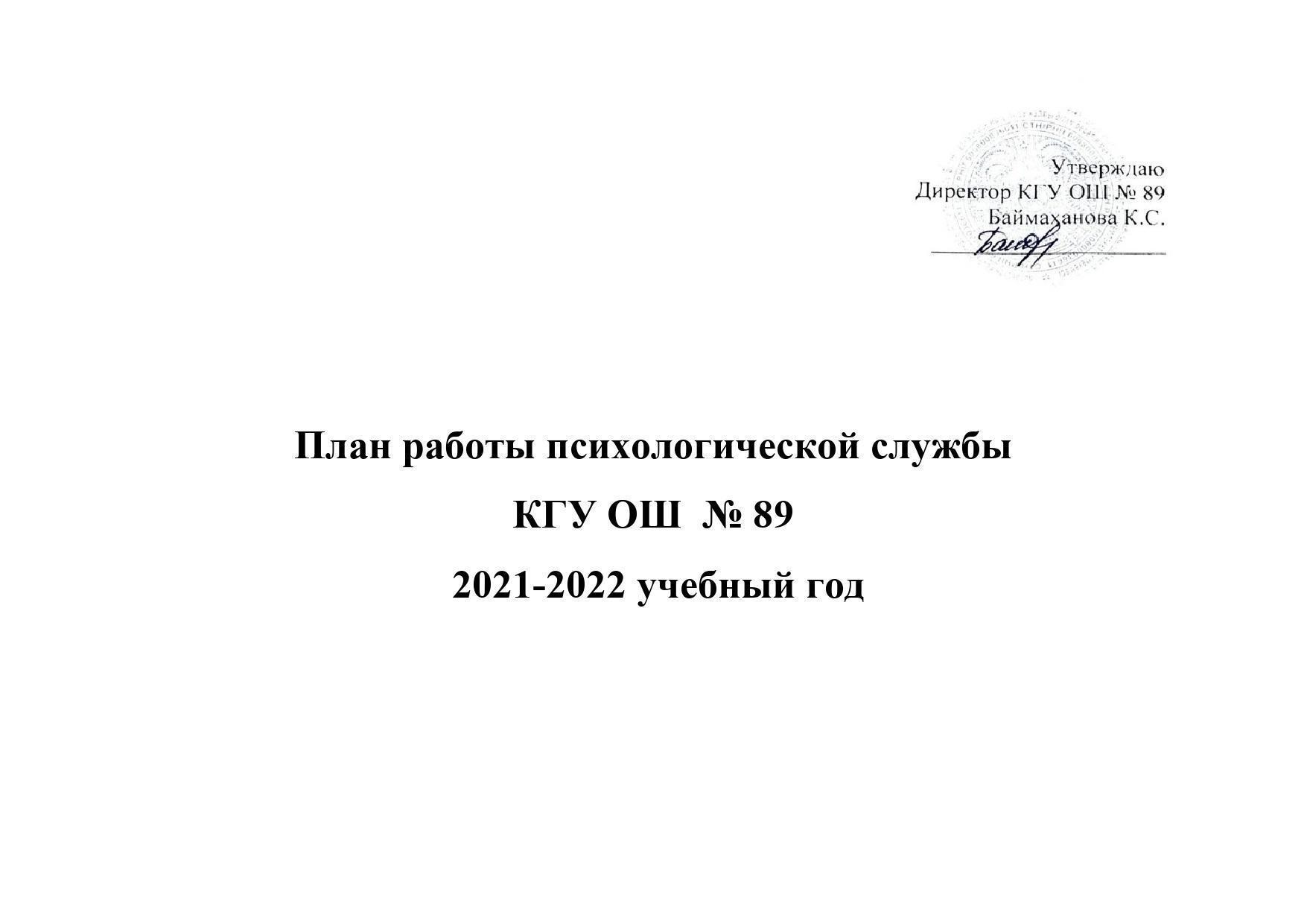 » Психологиялық қызметтің 2021-2022 оқу жылына арналған жылдық Жоспары