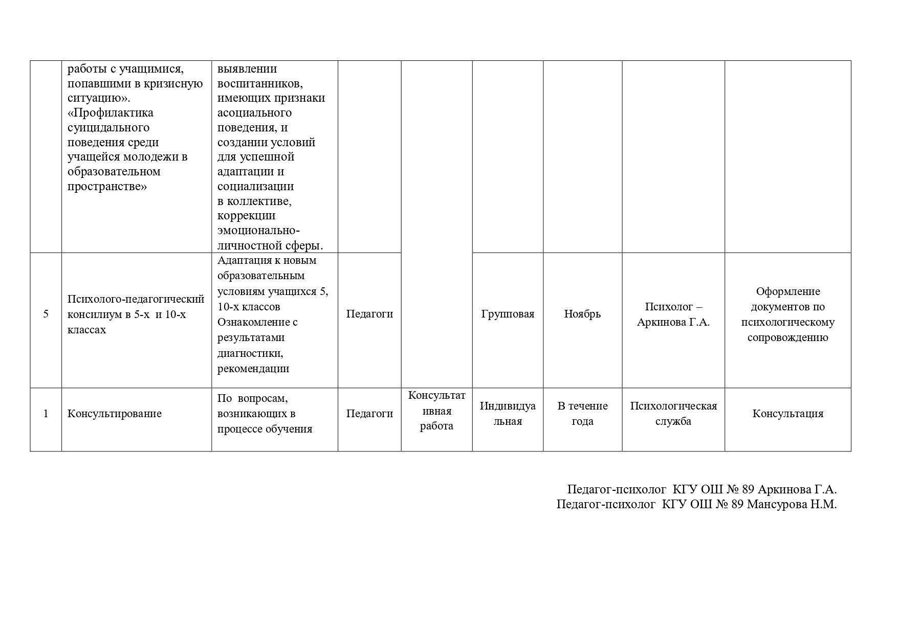 Психологиялық қызметтің 2021-2022 оқу жылына арналған жылдық Жоспары