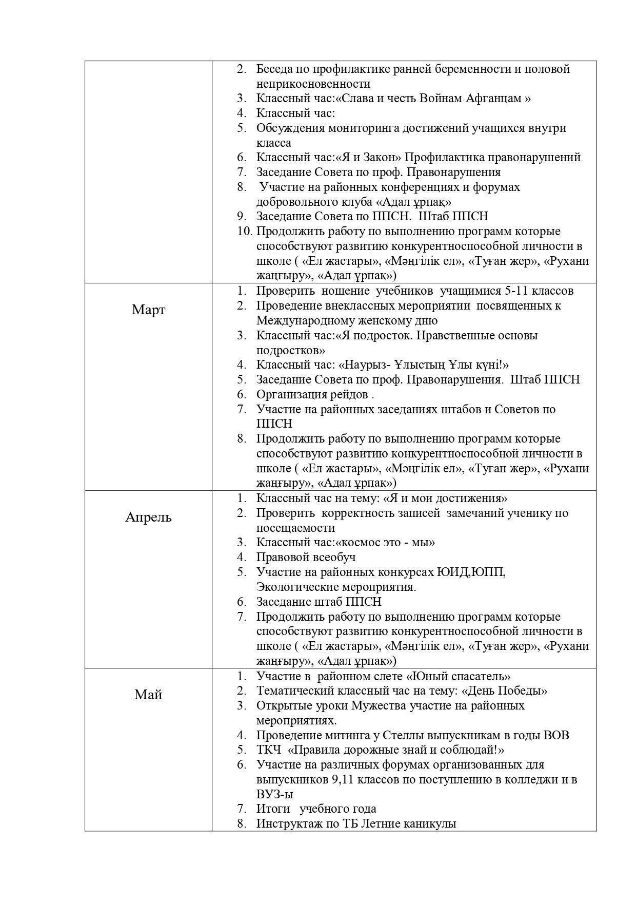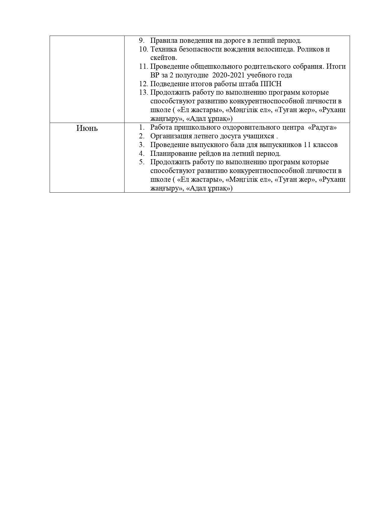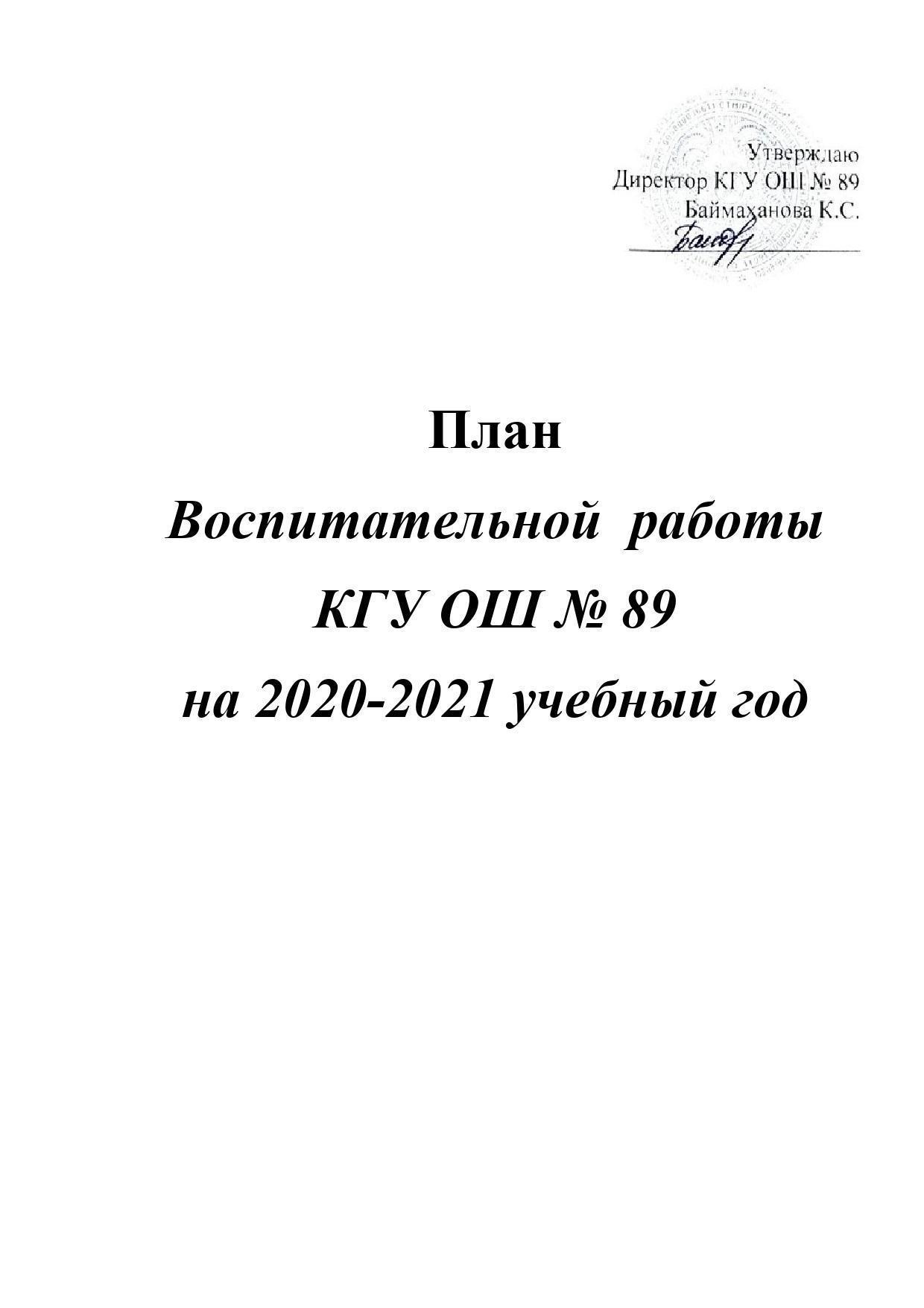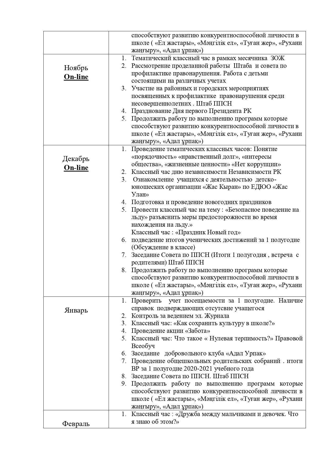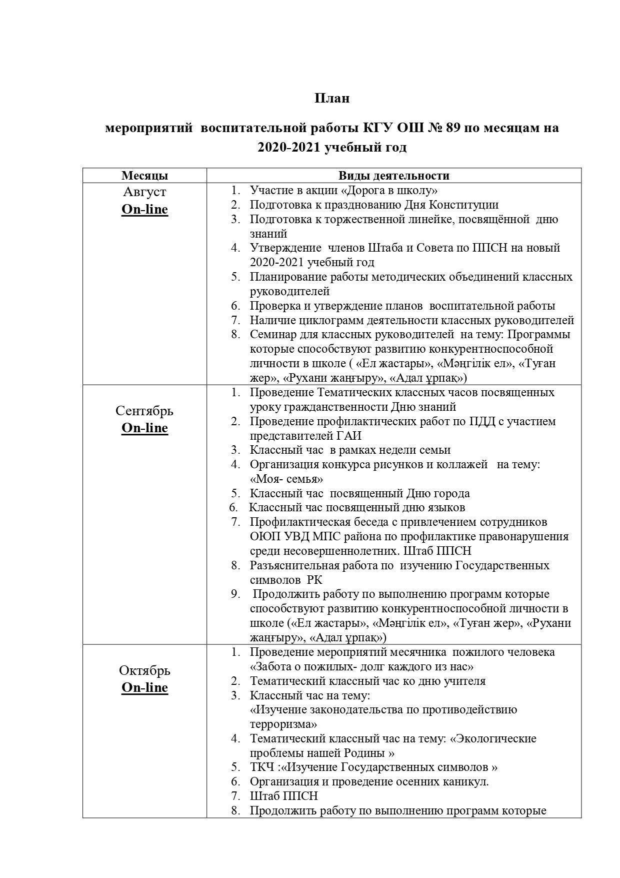 2020-2021 оқу жылына арналған тәрбие жұмысының жылдық Жоспары