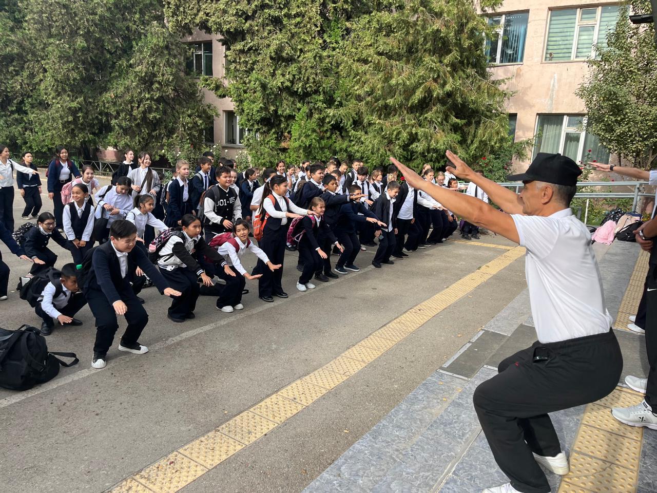 КГУ ОШ №89 мектебінде сабақ басталар алдында 3 минуттық дене шынықтыру жаттығулары ұйымдастырылды.