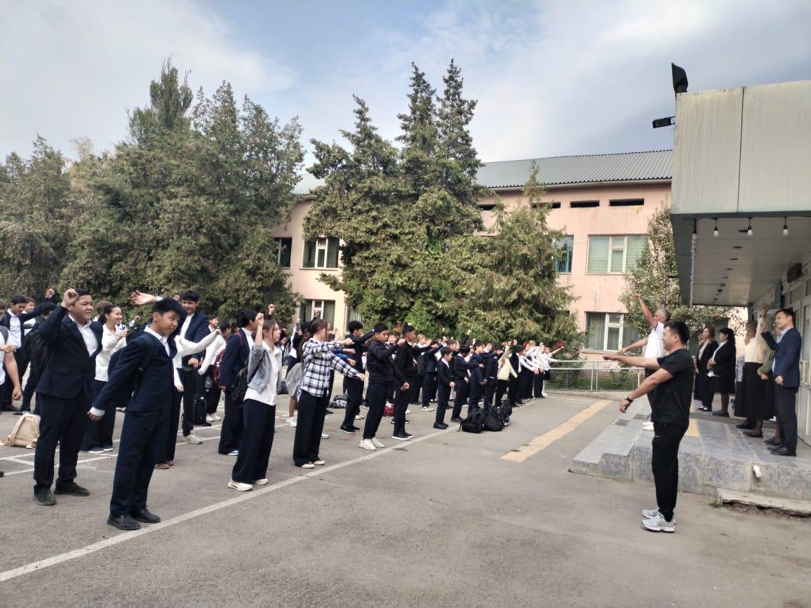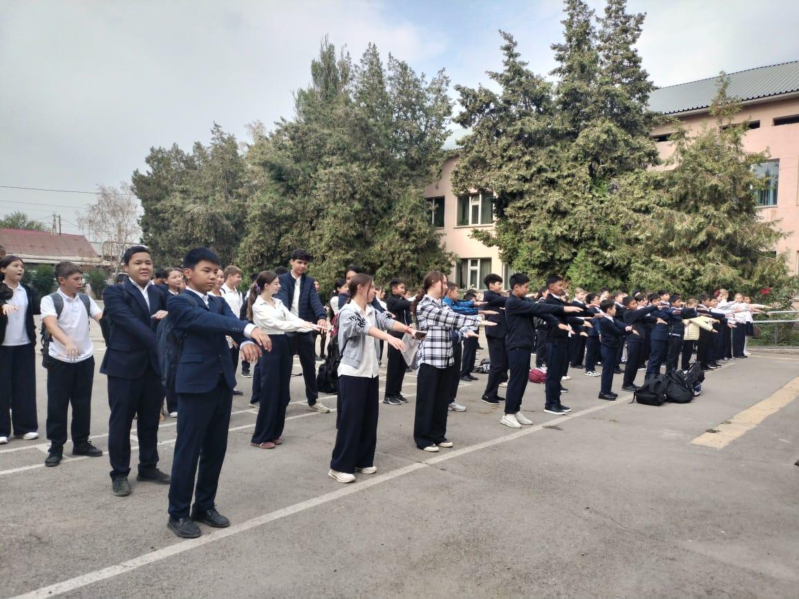 КГУ ОШ №89 мектебінде сабақ басталар алдында 3 минуттық дене шынықтыру жаттығулары ұйымдастырылды.