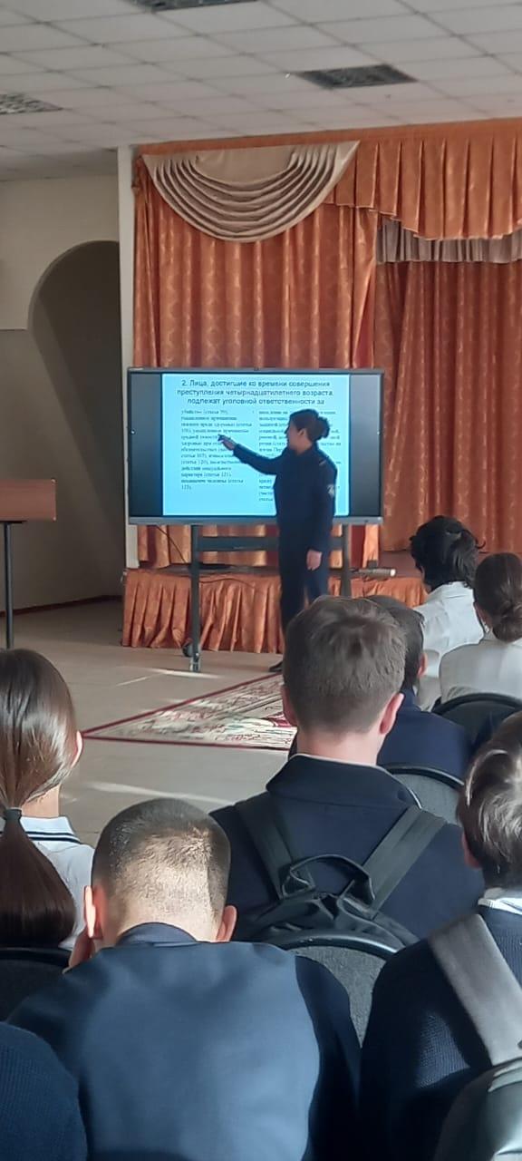 Старший УИП ОЮП ООБ УП Турксибского района майор полиции Мусаева Гузеля Исрапуловна провела с учащимися 8–9 классов профилактическую беседу на темы «Уголовная и административная ответственность несовершеннолетних» и «О вреде наркотических и психотропных веществ» с показом видеороликов.