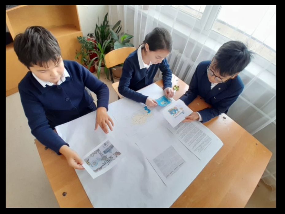 Ученики 5–7 классов подготовили тематическую выставку «Путь Казахстана», представив газеты, журналы и фотографии 1991–1995 годов. Ребята оформили экспозицию самостоятельно и показали ключевые события первых лет независимости Казахстана.
