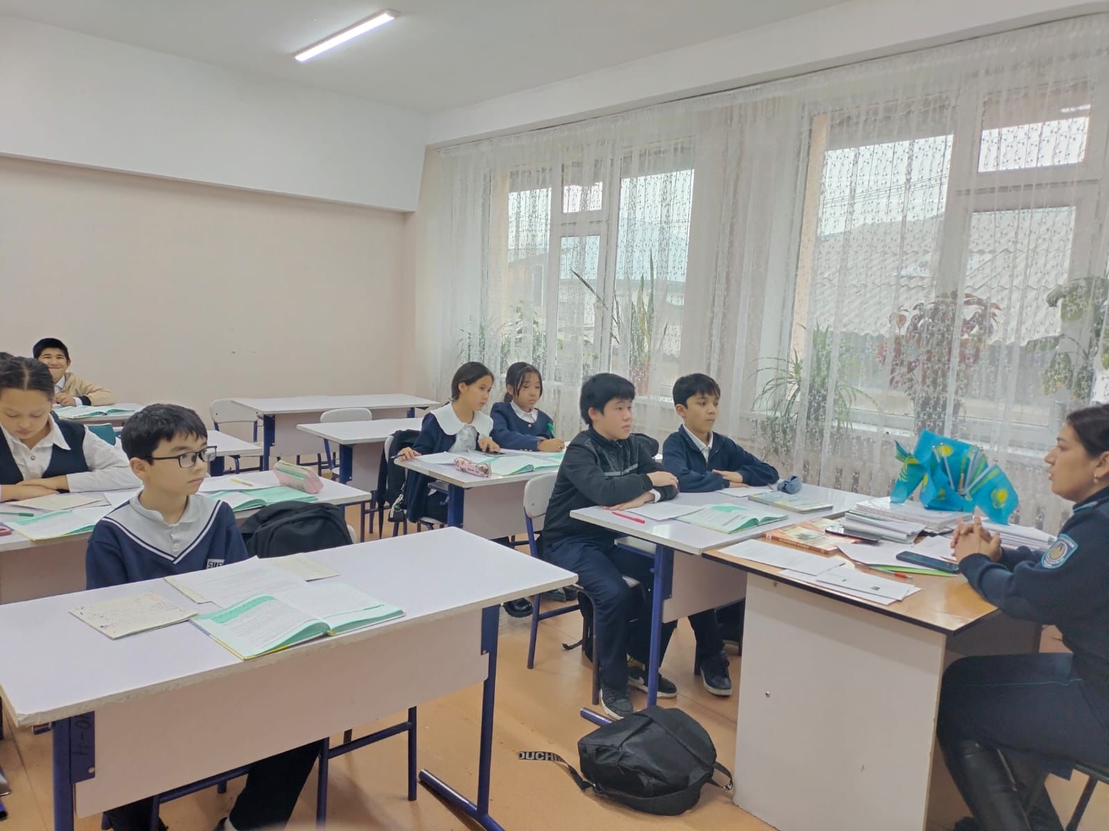 Пиротехника тақырыбында кездесу инспектор Мусаева Гүзель Исрапуловна жүргізді. Кездесу барысында оқушылар пиротехникалық құралдарды қауіпсіз қолдану ережелері, ережелерді бұзудың салдары және апаттардың алдын алу жолдары туралы ақпарат алды. Кездесу интерактивті түрде, нақты мысалдар мен жағдайларды талқылау арқылы өтті, бұл балаларға ақпаратты жақсы меңгеруге көмектесті.