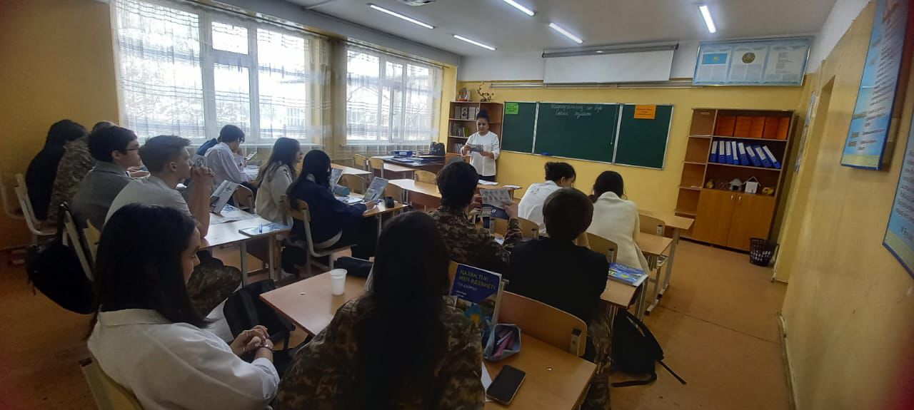 Тусубекова Күнсұлу Қадырқұловна, педагогика ғылымдарының кандидаты, педагогика және психология факультеті, жалпы және қолданбалы психология кафедрасының аға оқытушысы, біздің мектепте кәсіби бағдарлау жұмысын жүргізді. Кездесу барысында оқушыларға мамандық таңдау, кәсіби қызығушылықтар мен қабілеттерін анықтау, болашақ кәсіби жолдарын жоспарлау бойынша кеңестер берілді.