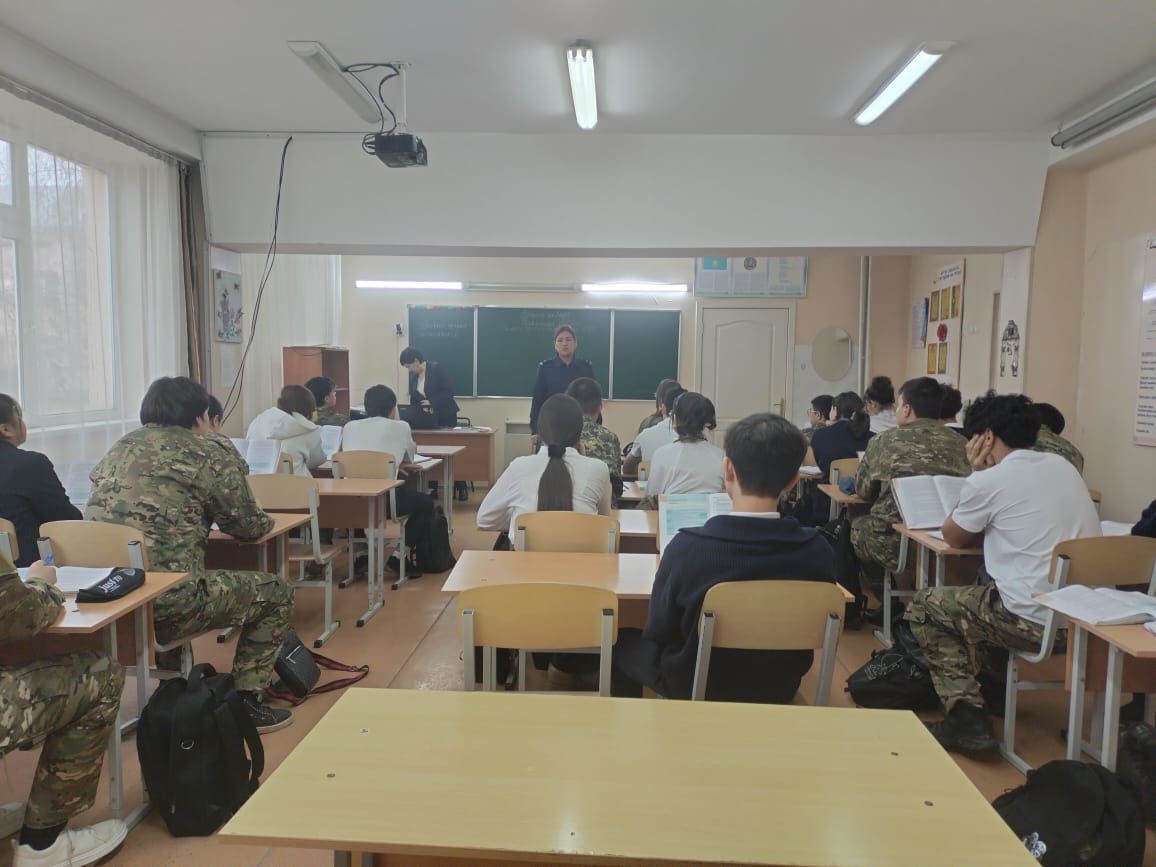 Профилактикалық жұмыс аясында «Заңмен рұқсат етілген» тақырыбында кәмелетке толмағандардың көшеде, қоғамдық орындарда және тұрмыста өзін-өзі ұстау ережелеріне арналған әңгіме өткізілді. Іс-шараға инспектор Мусаева Гузель Исрапуловна қатысып, оқушыларға заңнама талаптарын, кәмелетке толмағандардың құқықтары мен міндеттерін, сондай-ақ құқықбұзушылықтар үшін жауапкершілікті түсіндірді. Кездесу барысында түрлі өмірлік жағдайлар қарастырылып, қауіпсіз әрі заңға сай мінез-құлық бойынша ұсыныстар берілді. Іс-шара оқушылардың құқықтық сауаттылығын арттыруға және жауапкершілік сезімін қалыптастыруға бағытталды.
