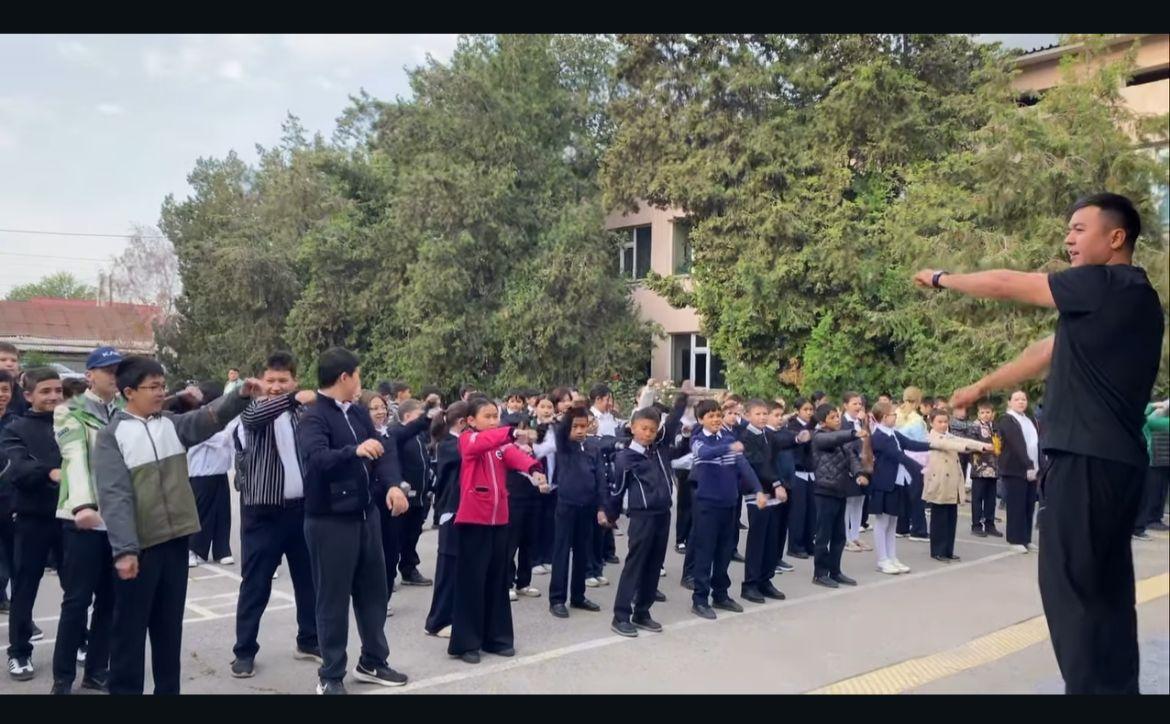 КГУ ОШ Nº89 мектебінде сабак басталар алдында 3 минуттық дене шынықтыру жаттығулары ұйымдастырылды.