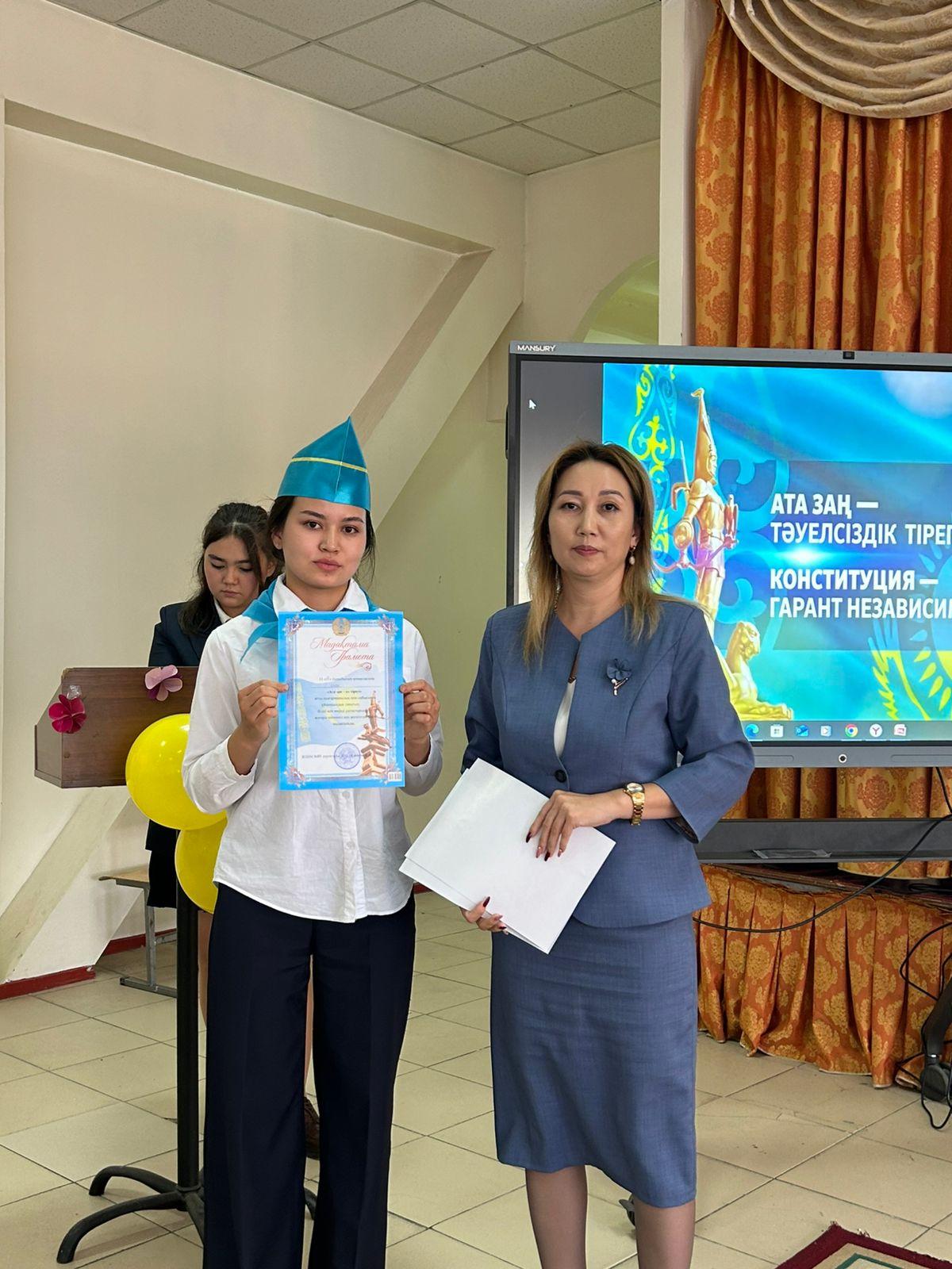 🗓 29.09.2025 г. в нашей школе среди учащихся 11-х классов прошёл конкурс «Ата Заң – ел тірегі». Ребята показали свои знания и таланты через сценки, ответы на вопросы и творческие номера. Участники продемонстрировали уважение к Конституции страны и её значению в жизни общества.