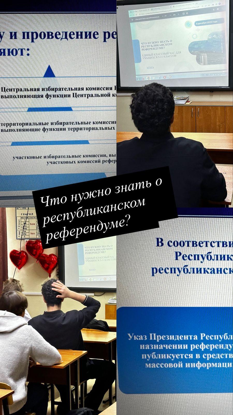 В нашей школе прошёл классный час на тему «Что нужно знать о республиканском референдуме». Учащиеся познакомились с основами гражданской ответственности и важной ролью каждого в жизни страны.