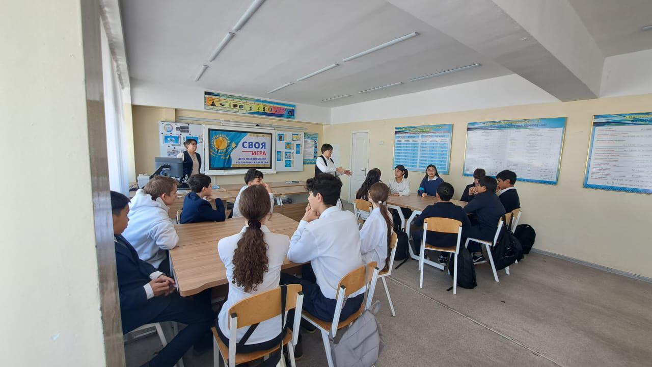 В 8–9 классах была проведена познавательная викторина ко Дню Независимости. Участники активно отвечали на вопросы и продемонстрировали высокий уровень подготовки.