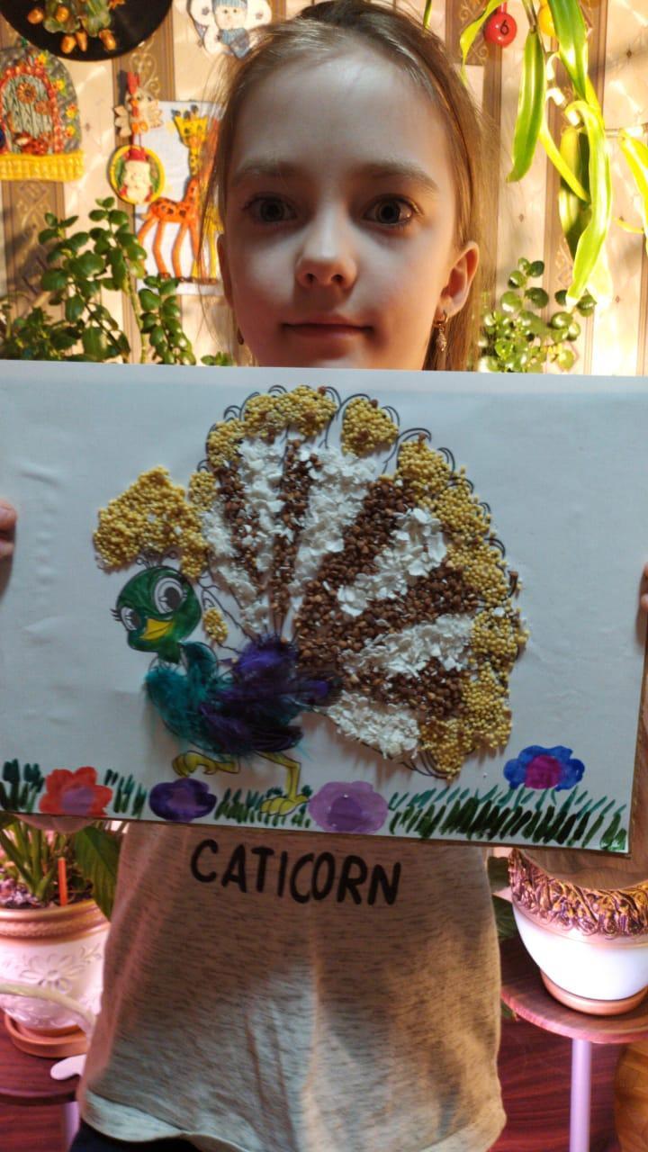 Аппликация "Павлин", работы 1 "А" класса.