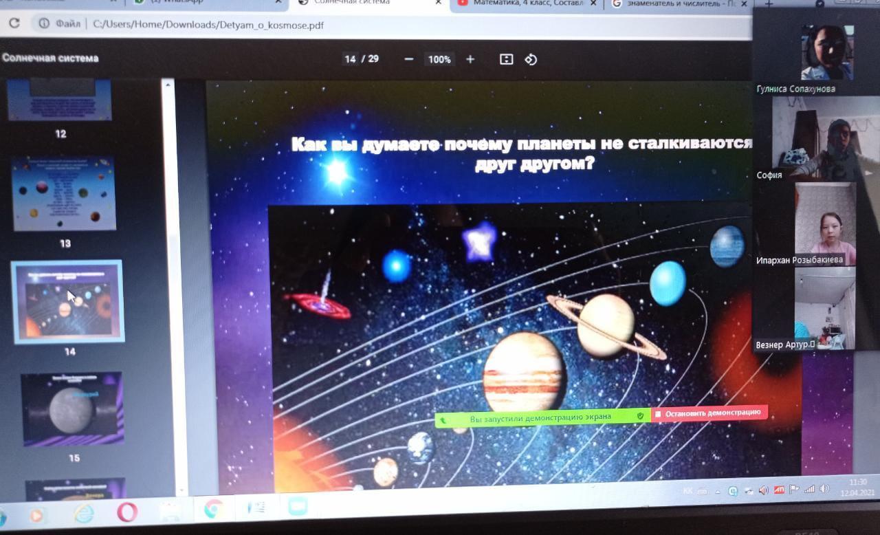 13 сәуір 2021 0 1 2 3 4 5 Классный час Сегодня 13.04 в 4 «А» классе классный руководитель Сопахунова Г.С. провела классный час на тему «День космонавтики».