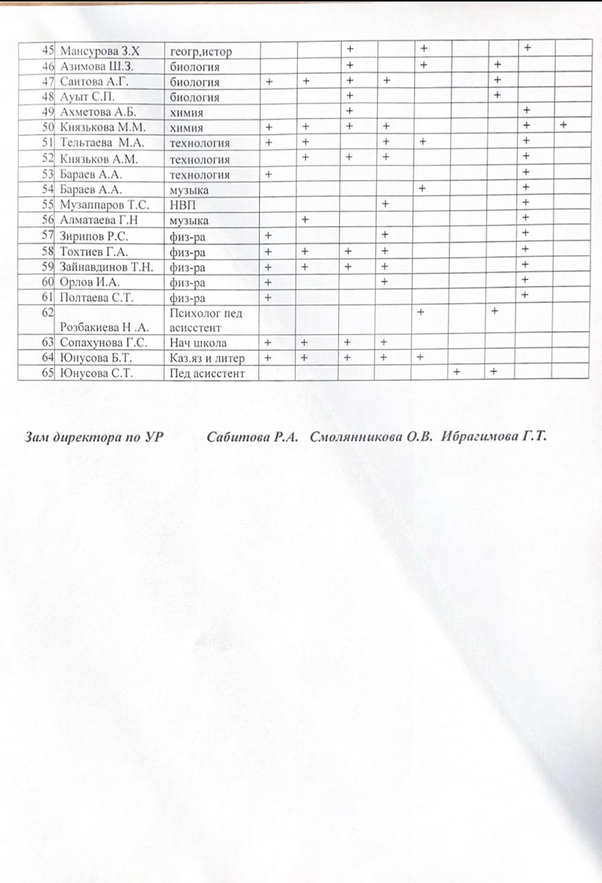 Сабақтарды зерттеу кестесі/ График наблюдение уроков