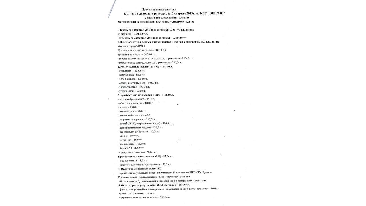 » Отчет о доходах и расходах за 2 квартал 2019г.