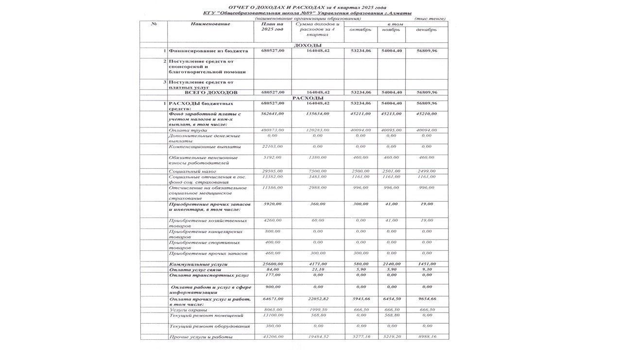 05 қаңтар 2026 0 1 2 3 4 5 Отчёт о доходах и расходах за 4 квартал 2025 года. 2025 жылғы 4 тоқсандағы кірістер мен шығыстар туралы есеп.