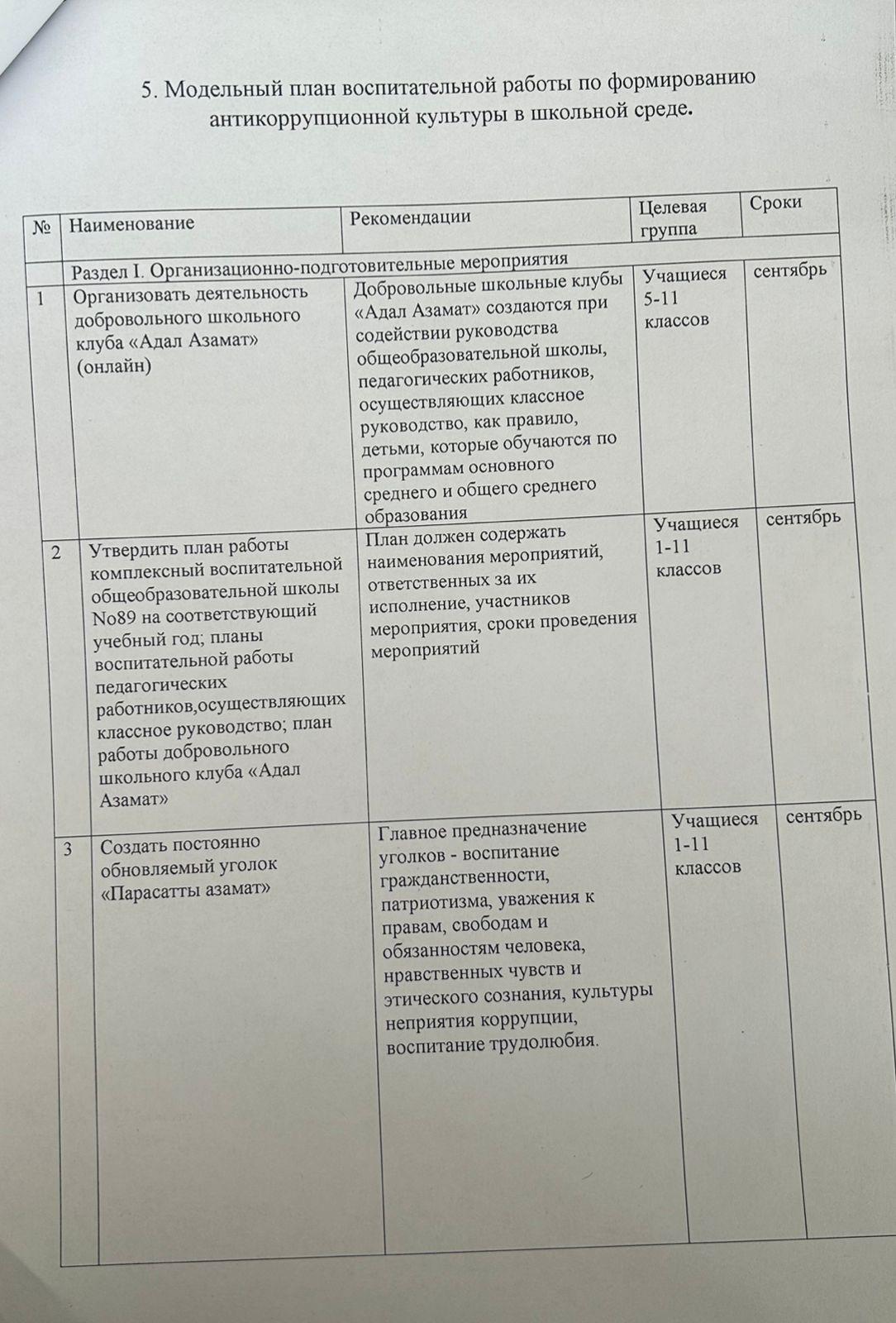 08 қыркүйек 2025 0 1 2 3 4 5 Программа формирования антикоррупционной культуры в школьной среде в контексте духовно-нравственного и гражданско-патриотического воспитания