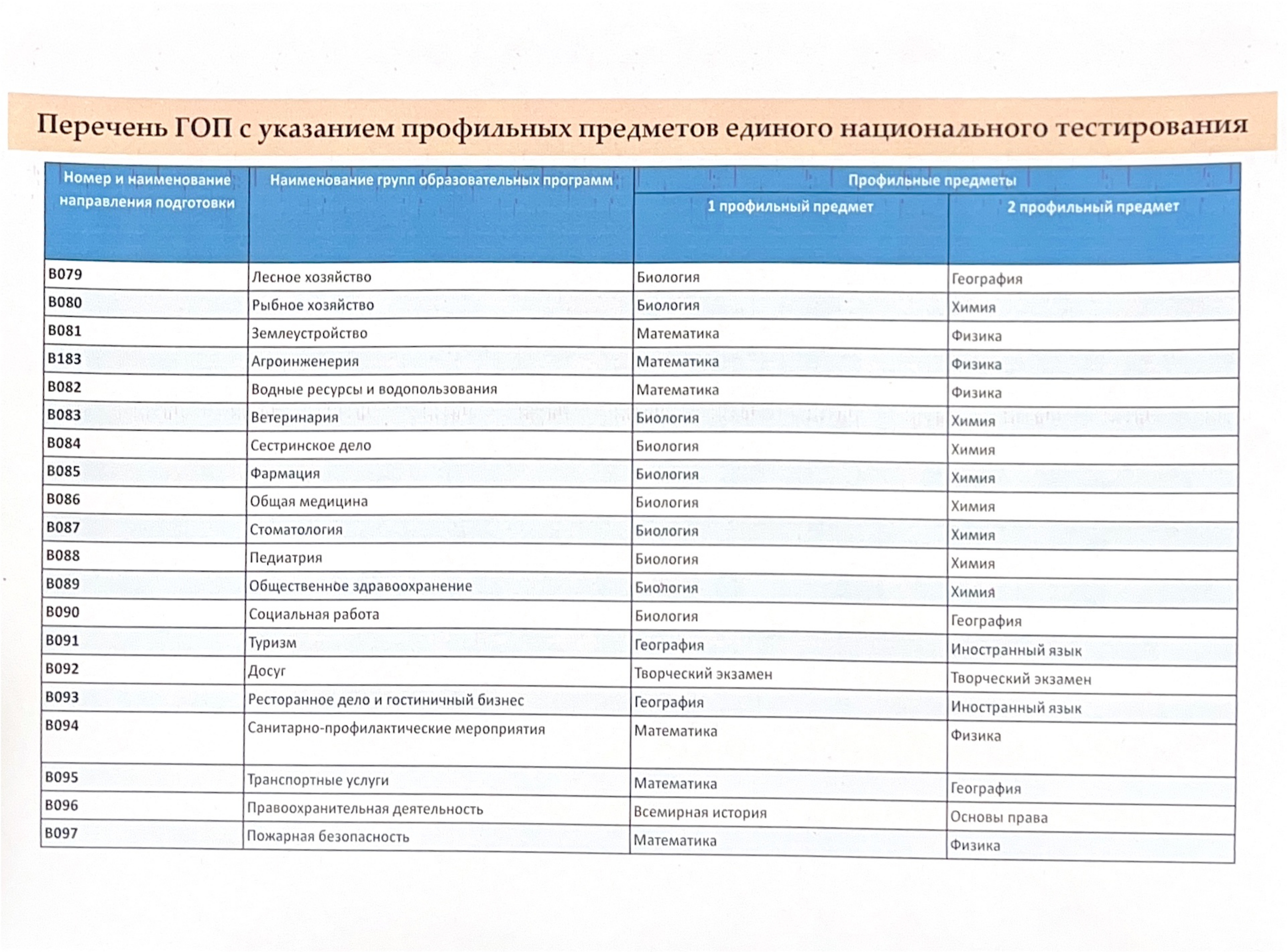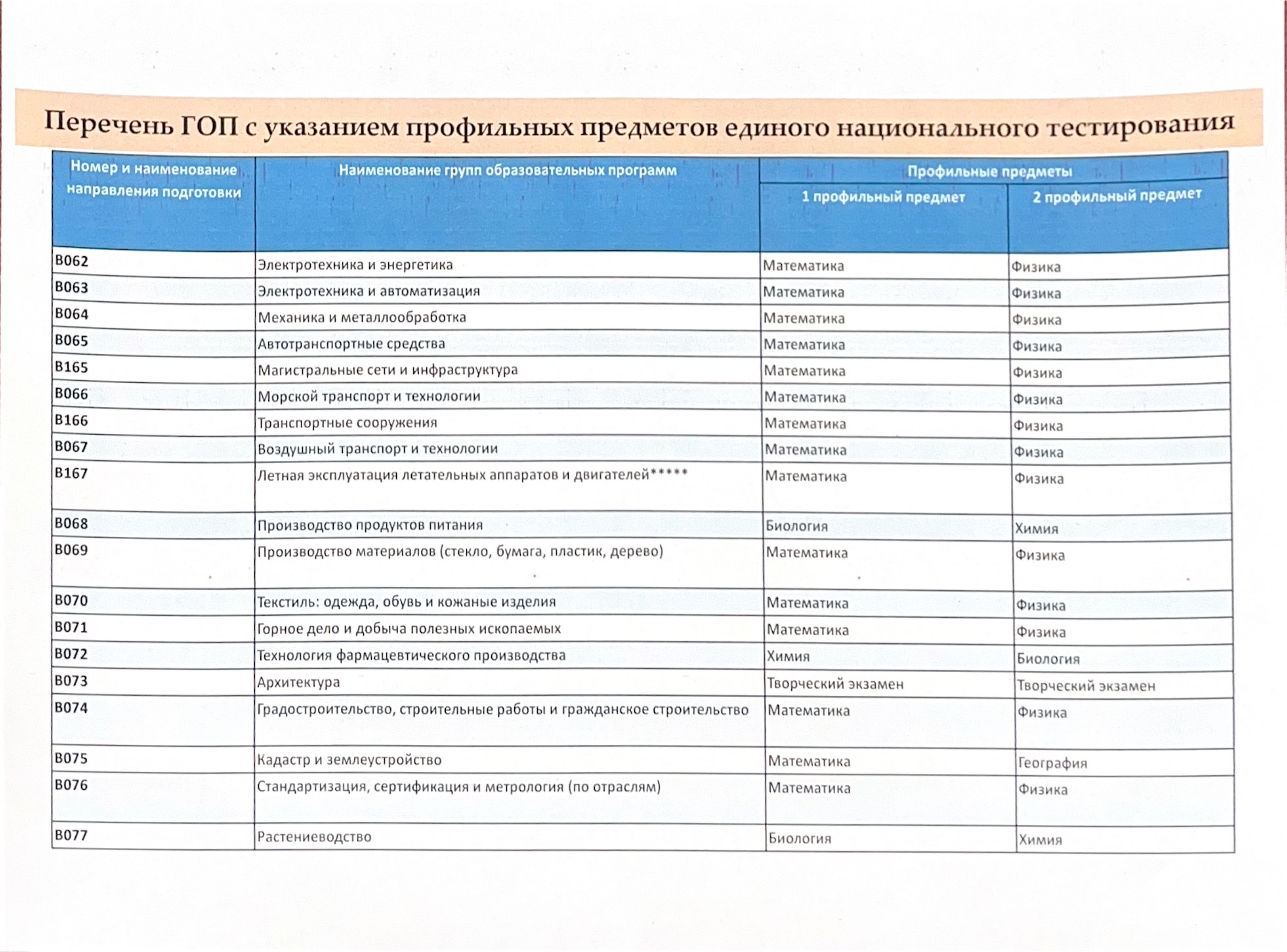 08 қаңтар 2026 0 1 2 3 4 5 Перечень ГОС с указанием профильных предметов единого национального тестирования