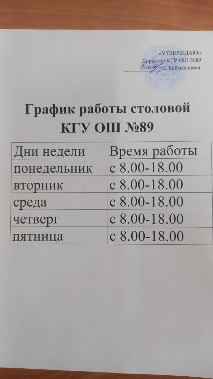 №89 ЖББМ асханасының дәліздің тазалау кестесі