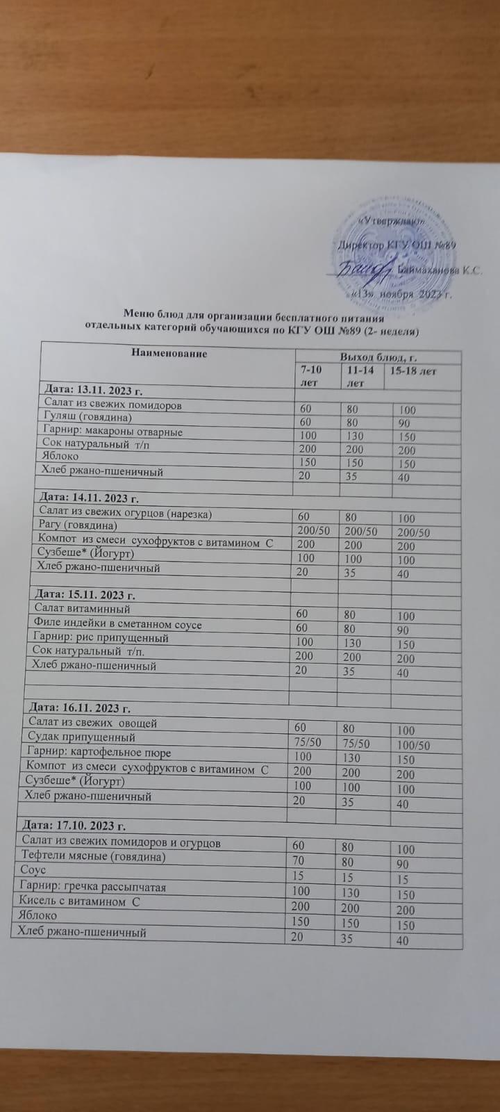 » Тегін тамақтануды ұйымдастыруға арналған ас мәзірі