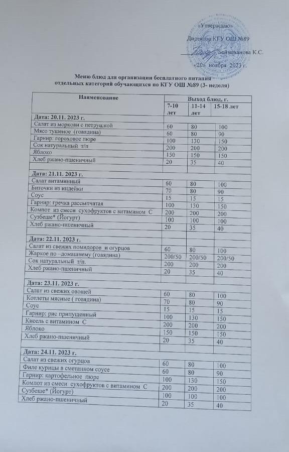» Тегін тамақтануды ұйымдастыруға арналған ас мәзірі