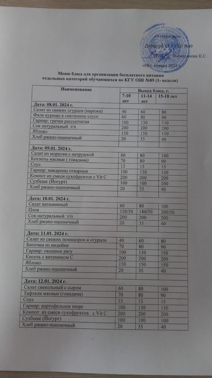 » Тегін тамақтануды ұйымдастыруға арналған ас мәзірі