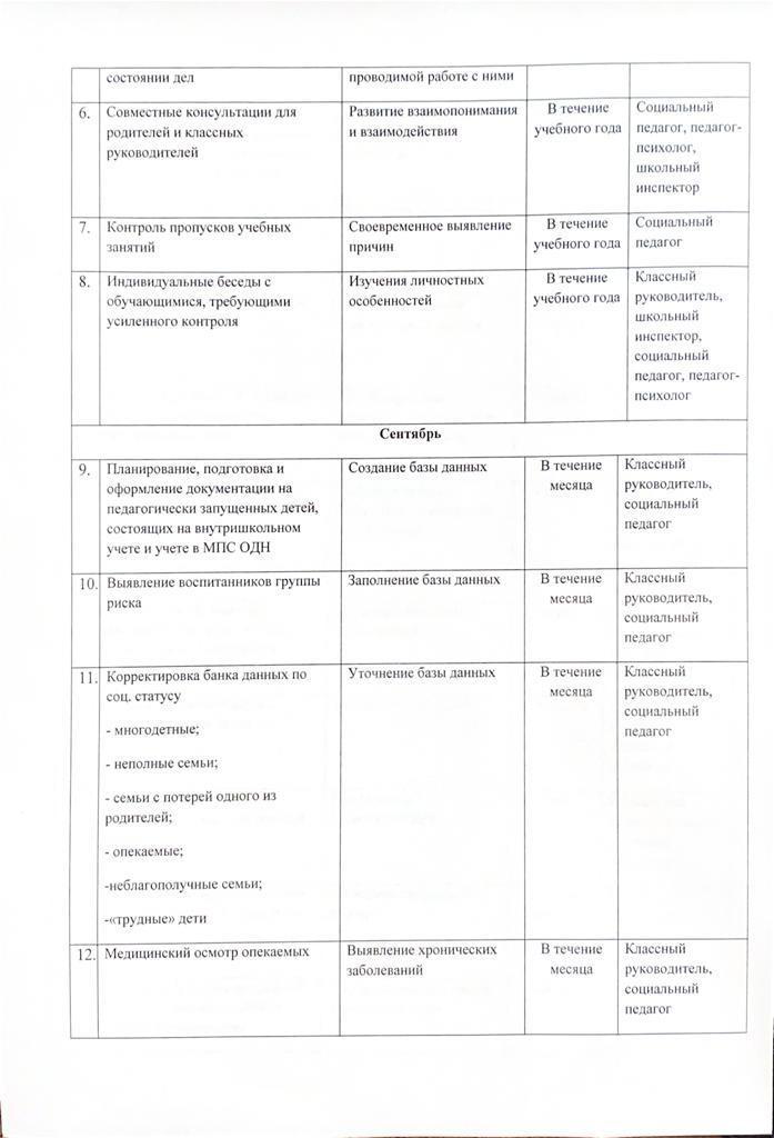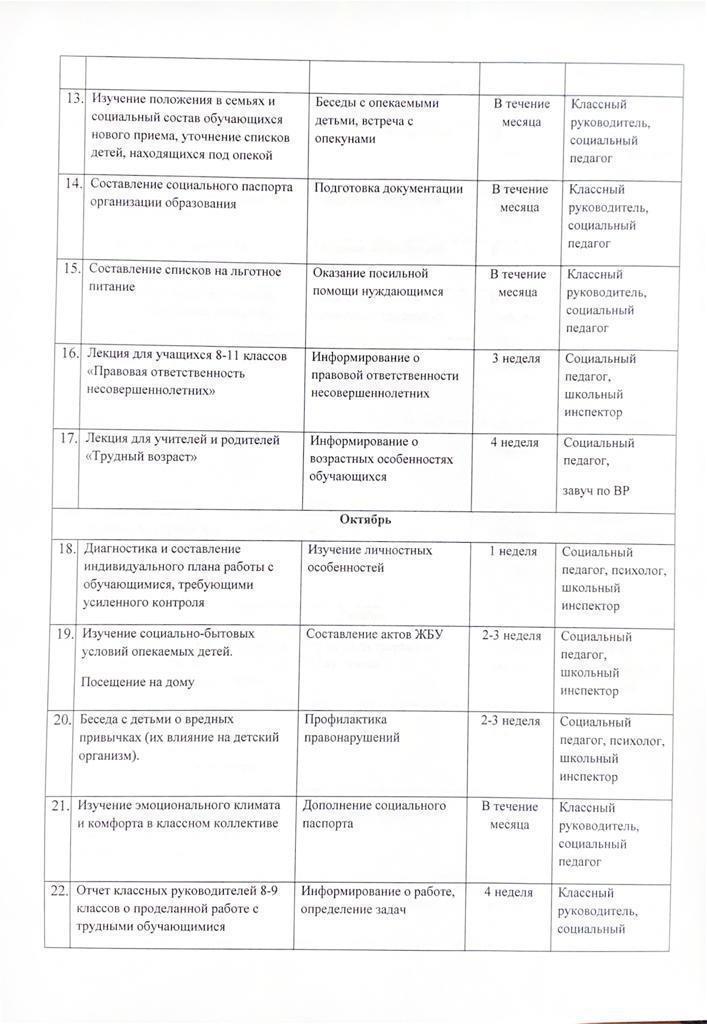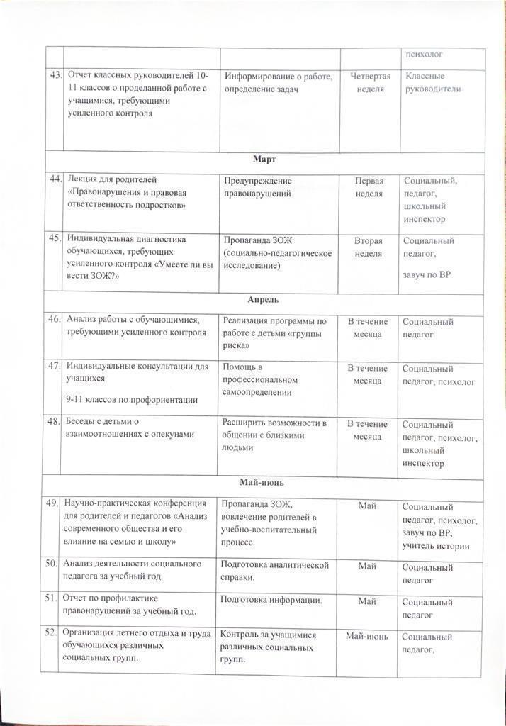 Әлеуметтік педагогтың жұмыс жоспары
