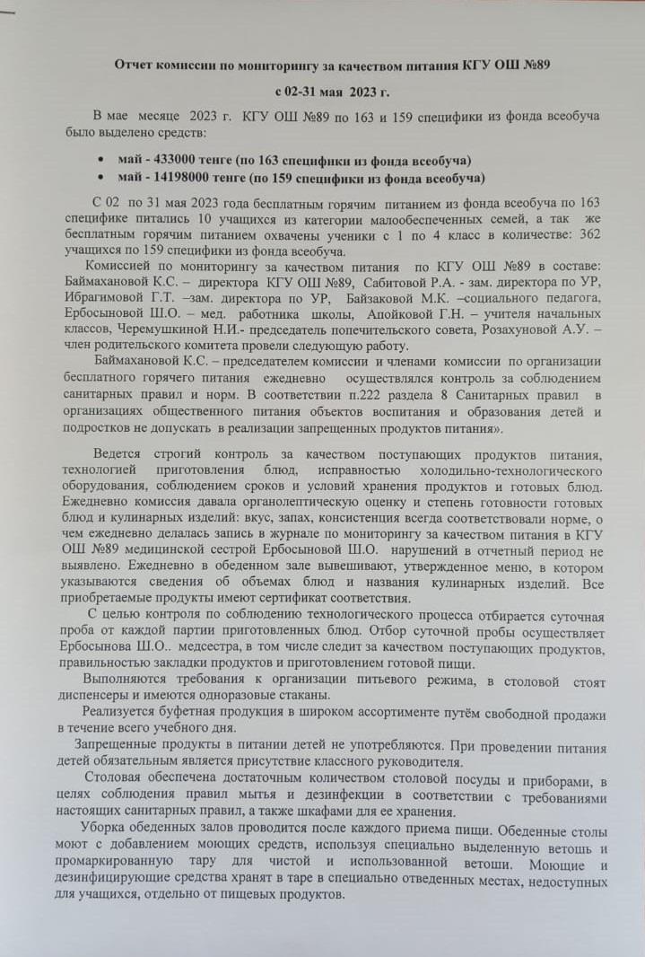 31 мамыр 2023 0 1 2 3 4 5 Мамыр айындағы тамақтану сапасын бақылау / Мониторинг качества питания за май