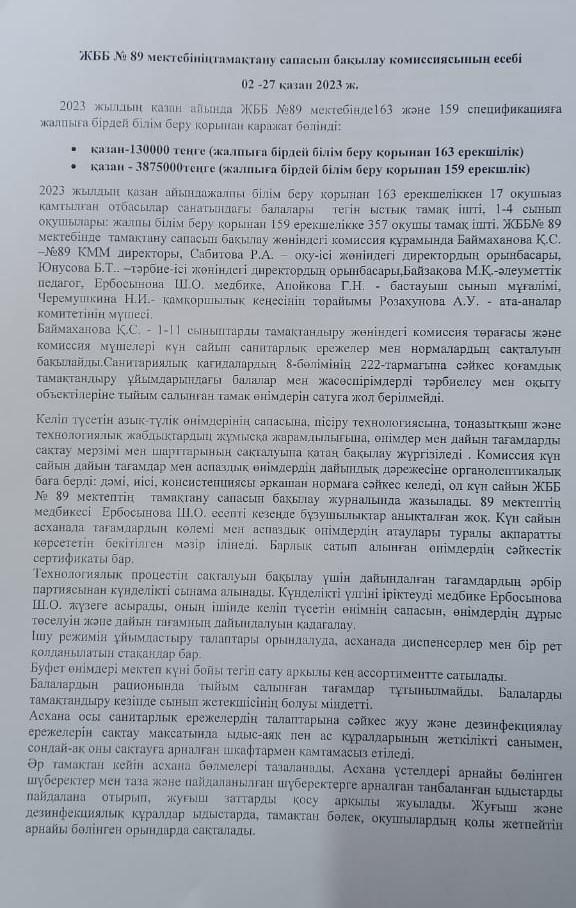 30 қазан 2023 0 1 2 3 4 5 Қазан айындағы тамақтану сапасының мониторингі туралы есеп / Отчет по мониторингу за качеством питания за октябрь месяц
