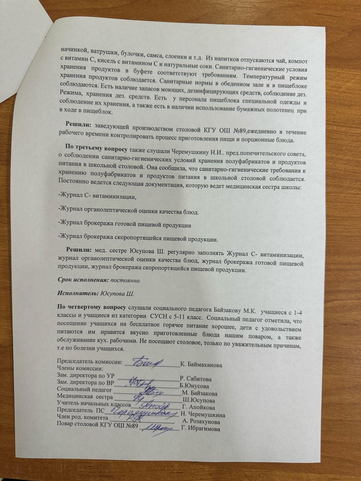 Протокол № 2 Попечительского Совета КГУ ОШ № 89