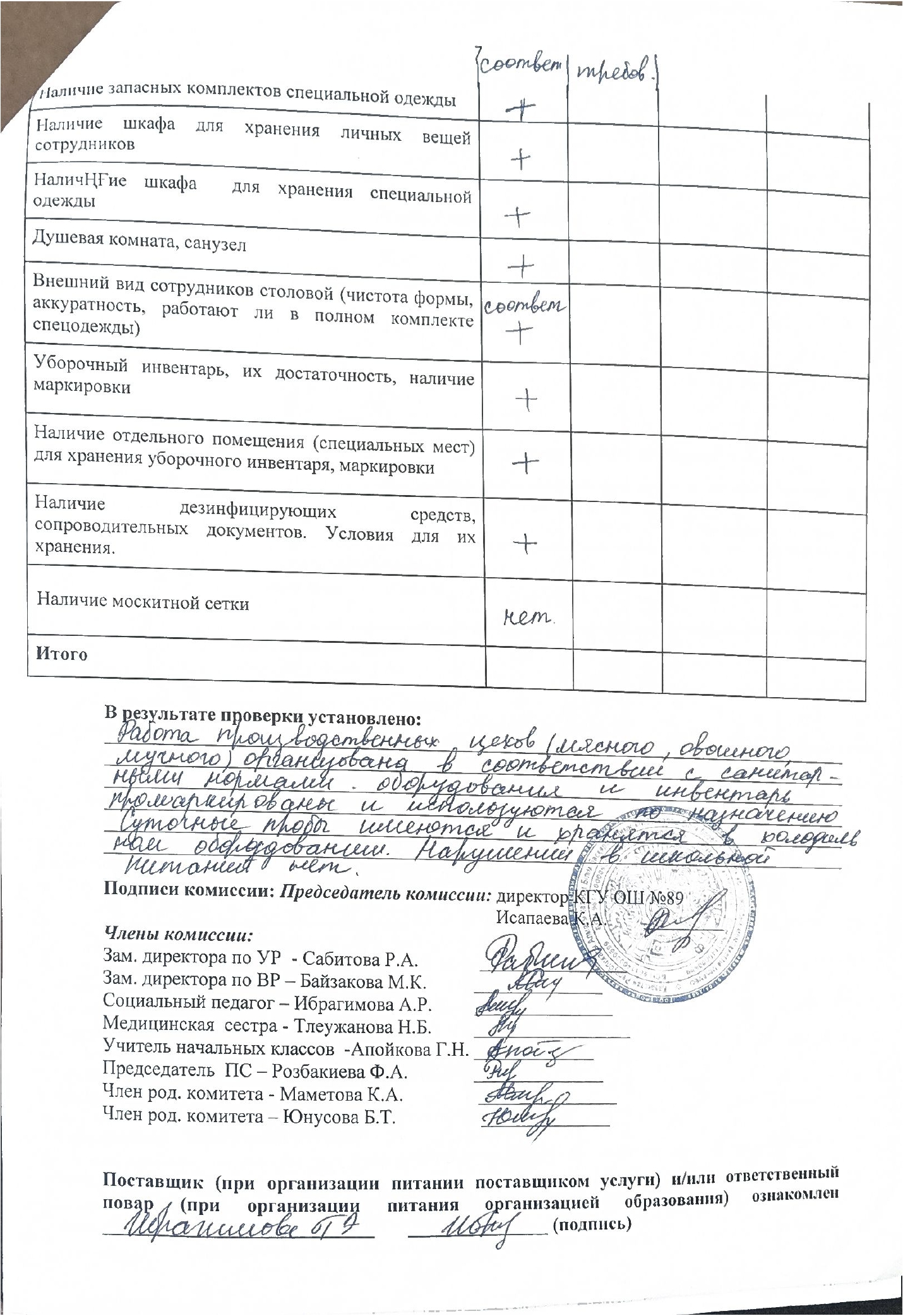 Тамақтану сапасын бақылау жөніндегі комиссияның желтоқсан айындағы есебі / Отчет комиссии по контролю за качеством питания за декабрь месяц