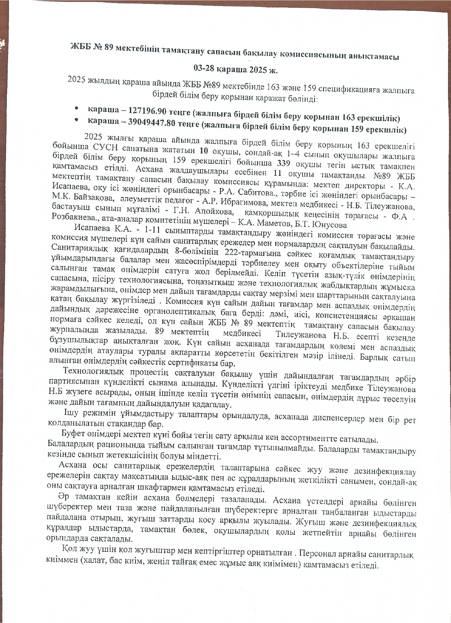 03 қараша 2025 0 1 2 3 4 5 Қараша айындағы тамақтану сапасын бақылау есебі / Отчет по мониторингу за качеством питания за ноябрь