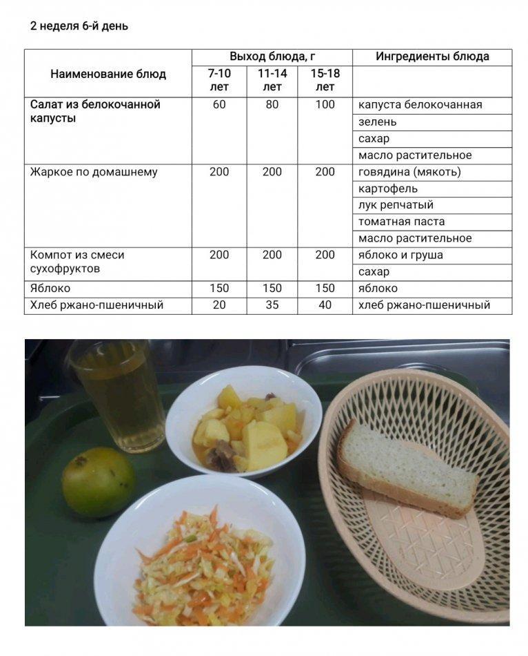 Меню блюд для организации бесплатного питания